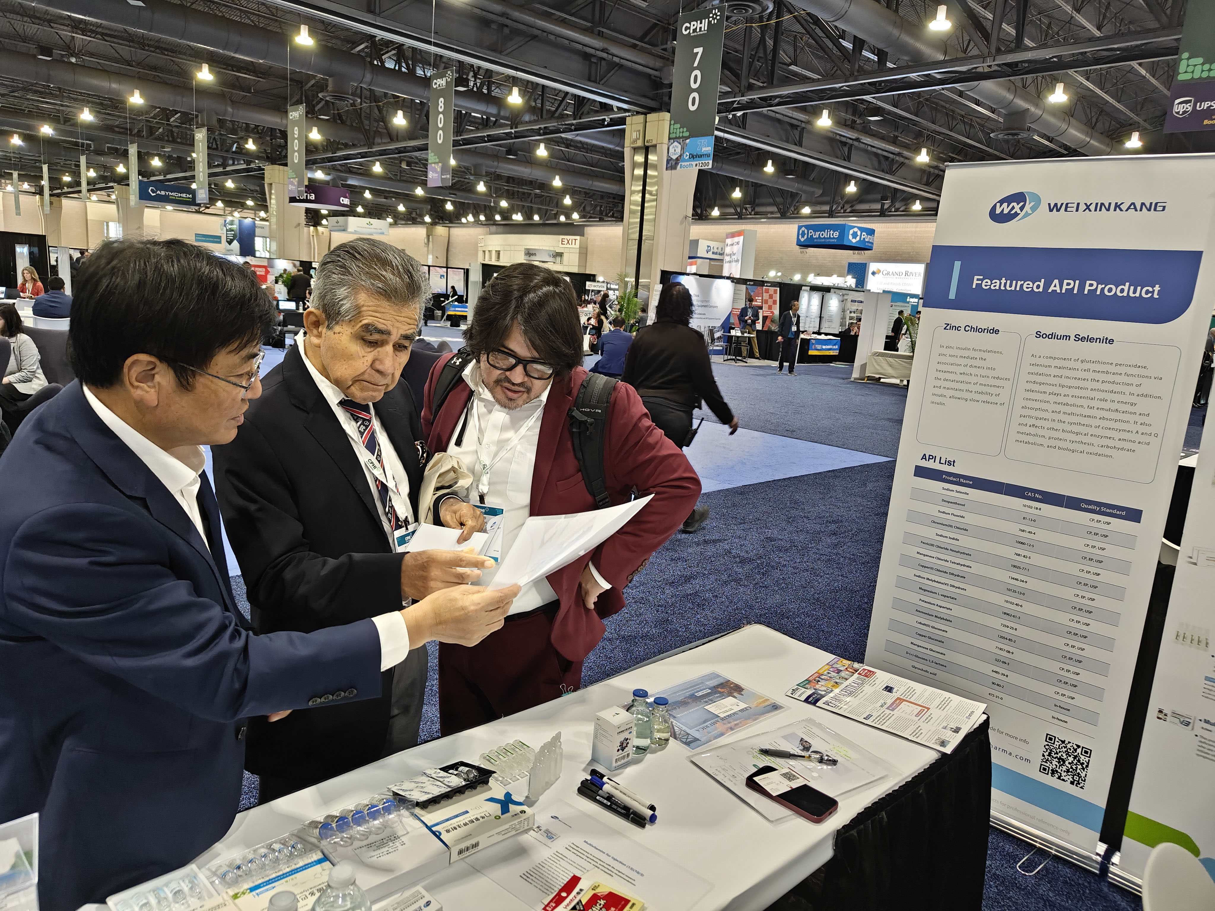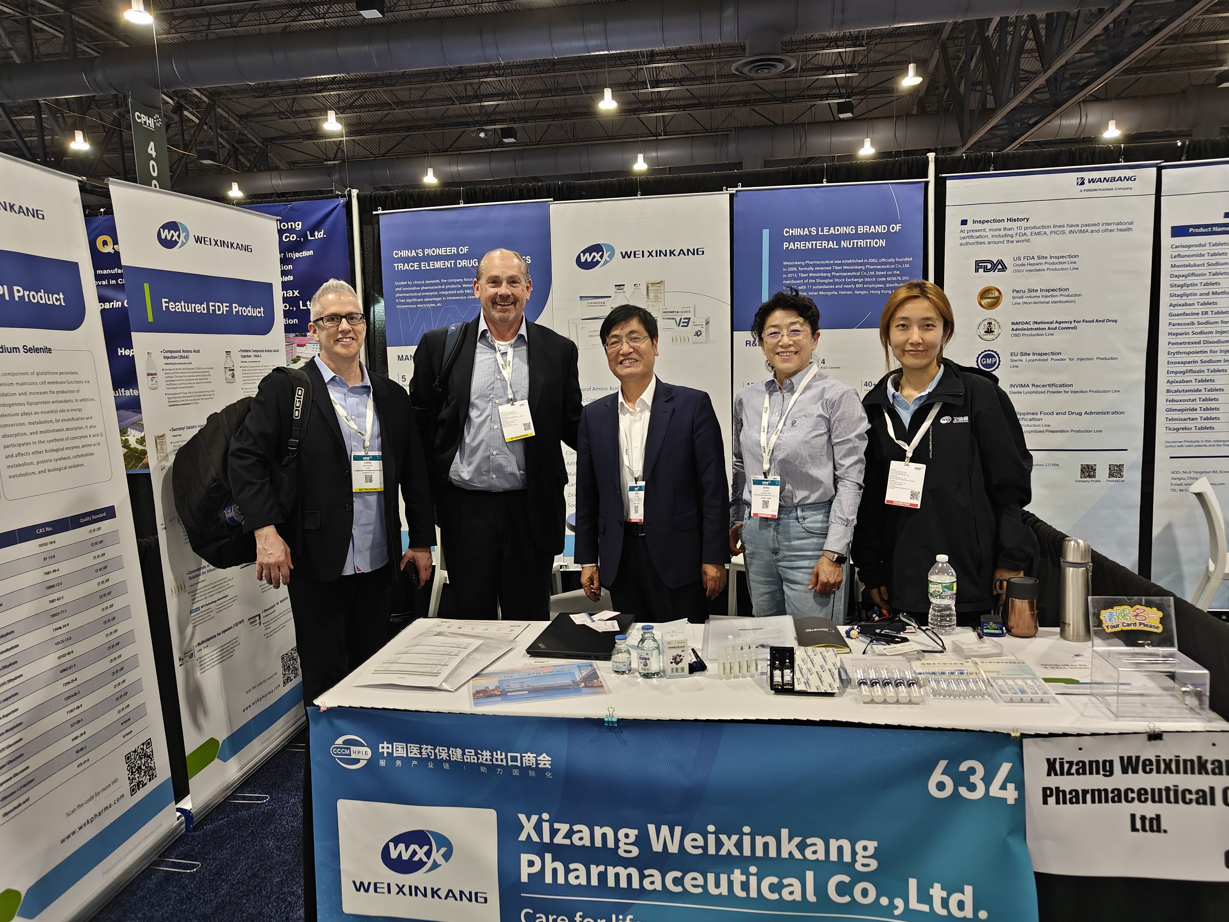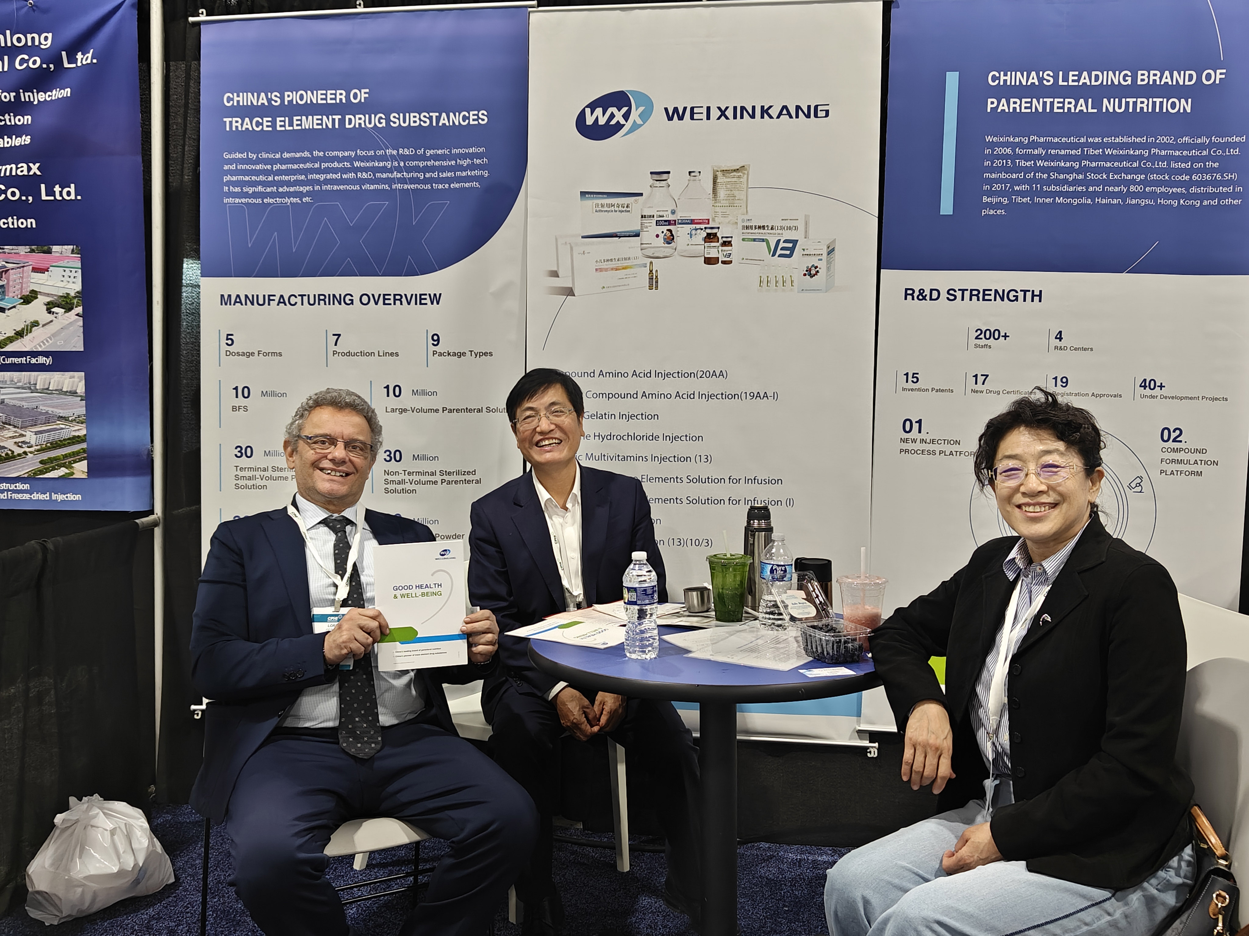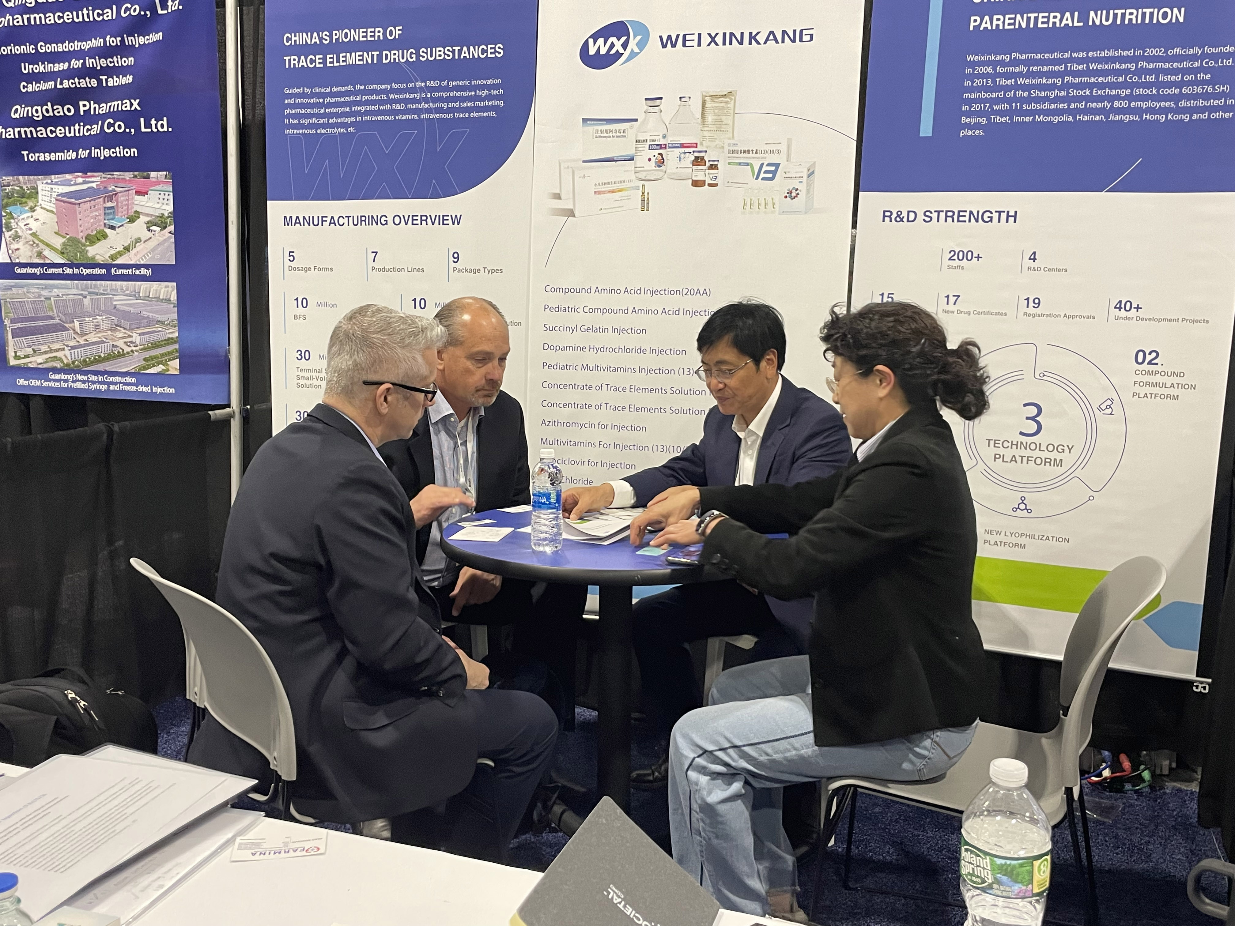 衛信康國際業務團隊攜多種維生素注射液(13)(10/3)、小兒多種維生素注射液(13)、多種微量元素注射液、復方氨基酸注射液(20AA)、氯化鋅、亞硒酸鈉等公司制劑與原料藥領域核心產品首次參加北美醫藥展會,與制藥行業的專業人士和潛在合作伙伴深入交流,探討國際化業務合作新機遇。