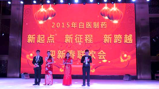2015年2月12日,白醫制藥年會在烏蘭浩特市蒙佳大酒店正式開場。今年白醫制藥的年會是最為盛大的一年,雖然AKB認證占領了大量的前期工作,但是同事們都利用自己的業余時間積極的開始籌備。下午一點,員工們懷著興奮激動的心情到達年會現場。當天,公司準備了豐富多彩的節目表演以及豐厚的禮品進行抽獎,每個人的臉上都寫滿了期待。