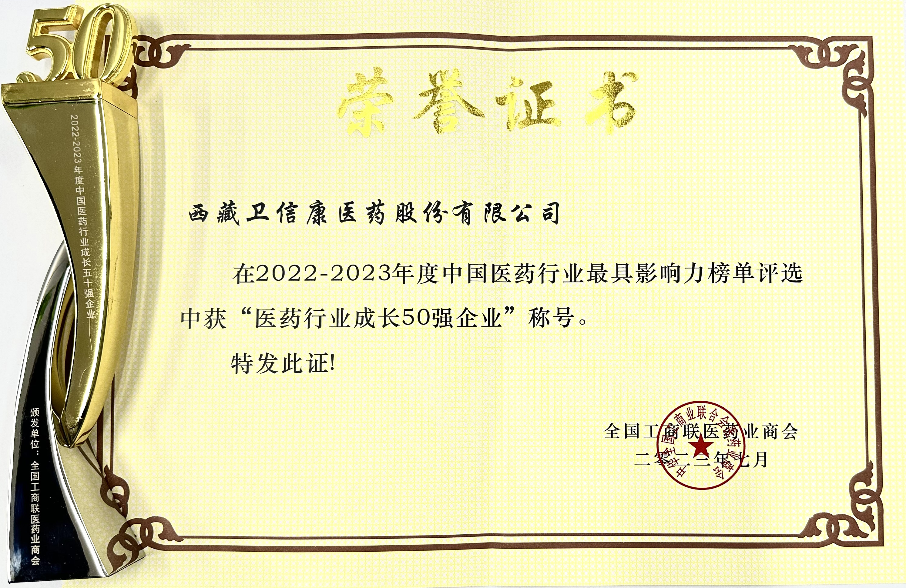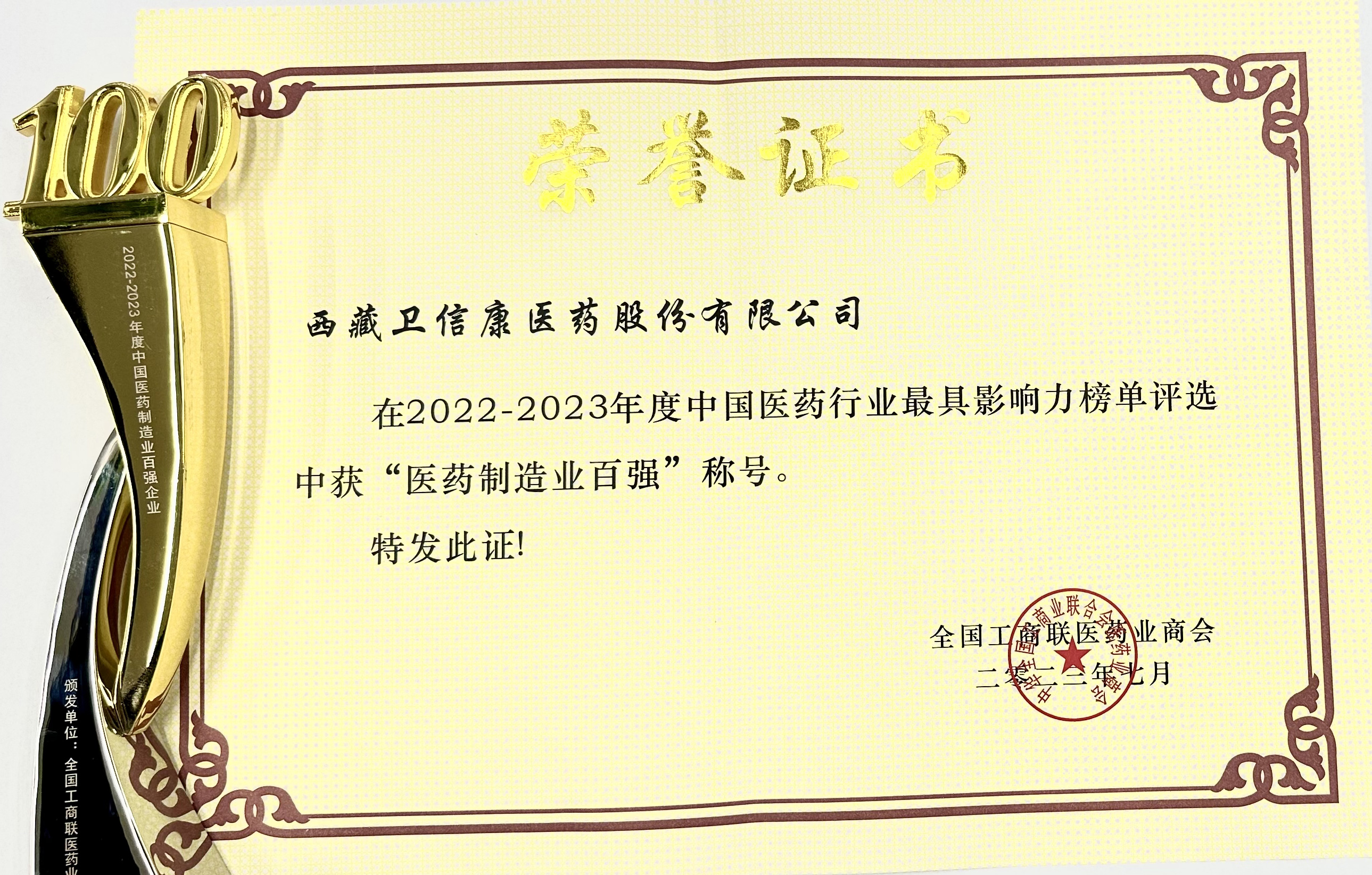 7月4日,全國(guó)工商聯(lián)醫(yī)藥業(yè)商會(huì)、黑龍江省工商聯(lián)和黑龍江省發(fā)改委在哈爾濱共同舉辦了“2022-2023年度中國(guó)醫(yī)藥行業(yè)最具影響力榜單發(fā)布會(huì)”,隆重發(fā)布了中國(guó)醫(yī)藥制造業(yè)百?gòu)?qiáng)、醫(yī)藥行業(yè)成長(zhǎng)50強(qiáng)、中國(guó)醫(yī)藥商業(yè)百?gòu)?qiáng)等12項(xiàng)榜單。西藏衛(wèi)信康醫(yī)藥股份有限公司榮登“2022-2023年度中國(guó)醫(yī)藥制造業(yè)百?gòu)?qiáng)”、“2022-2023年度中國(guó)醫(yī)藥行業(yè)成長(zhǎng)50強(qiáng)”、“2022-2023年度中國(guó)醫(yī)藥行業(yè)守法誠(chéng)信企業(yè)”等3項(xiàng)榜單。